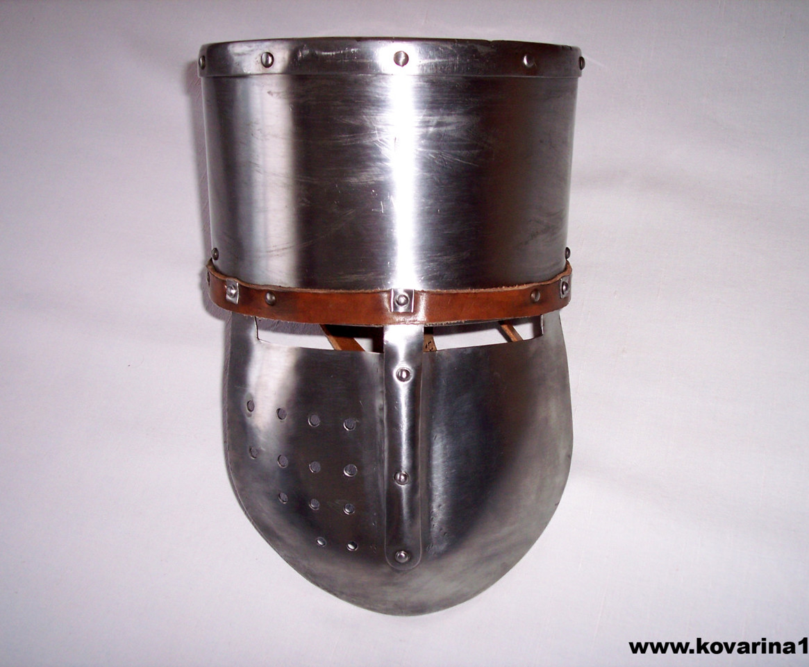 s pevným štítem, nýtovaná, vylepení kůží, řemení, drátkovaný povrch