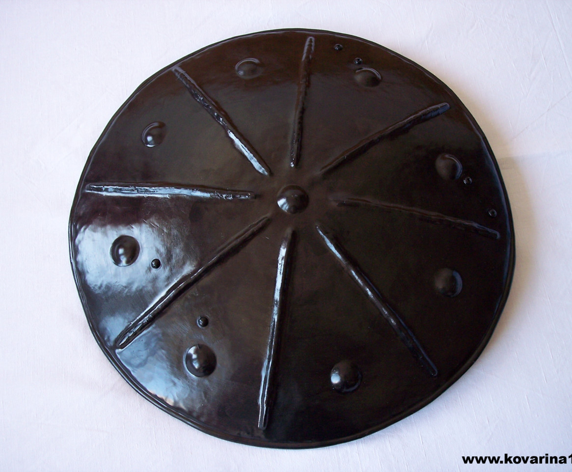 plocha zpevněná zesilovacími puklicemi a profily,obvod zpevněný lemem, kožené řemení, základní nátěr