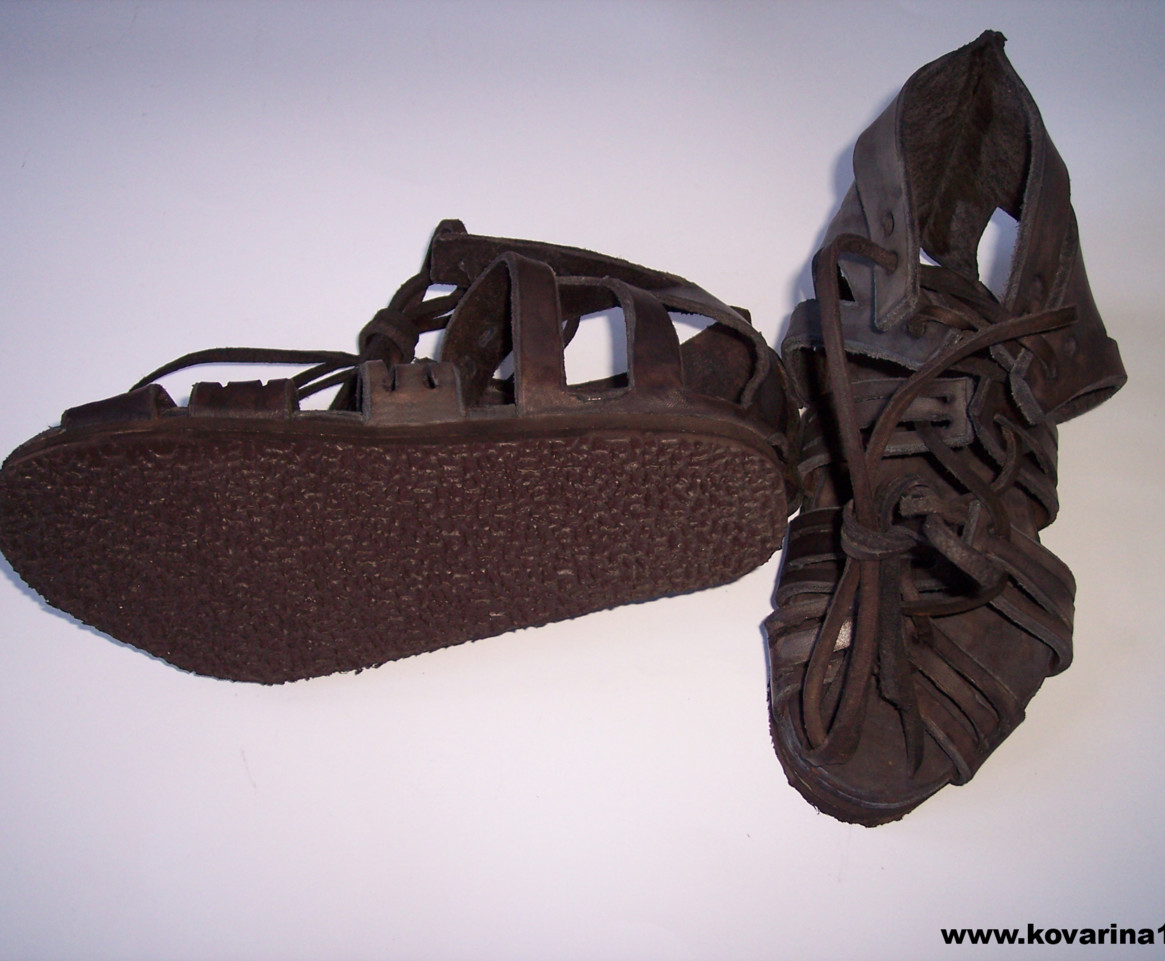 římské vojenské boty, dvojitá podrážka bez nýtů, guma , mořené