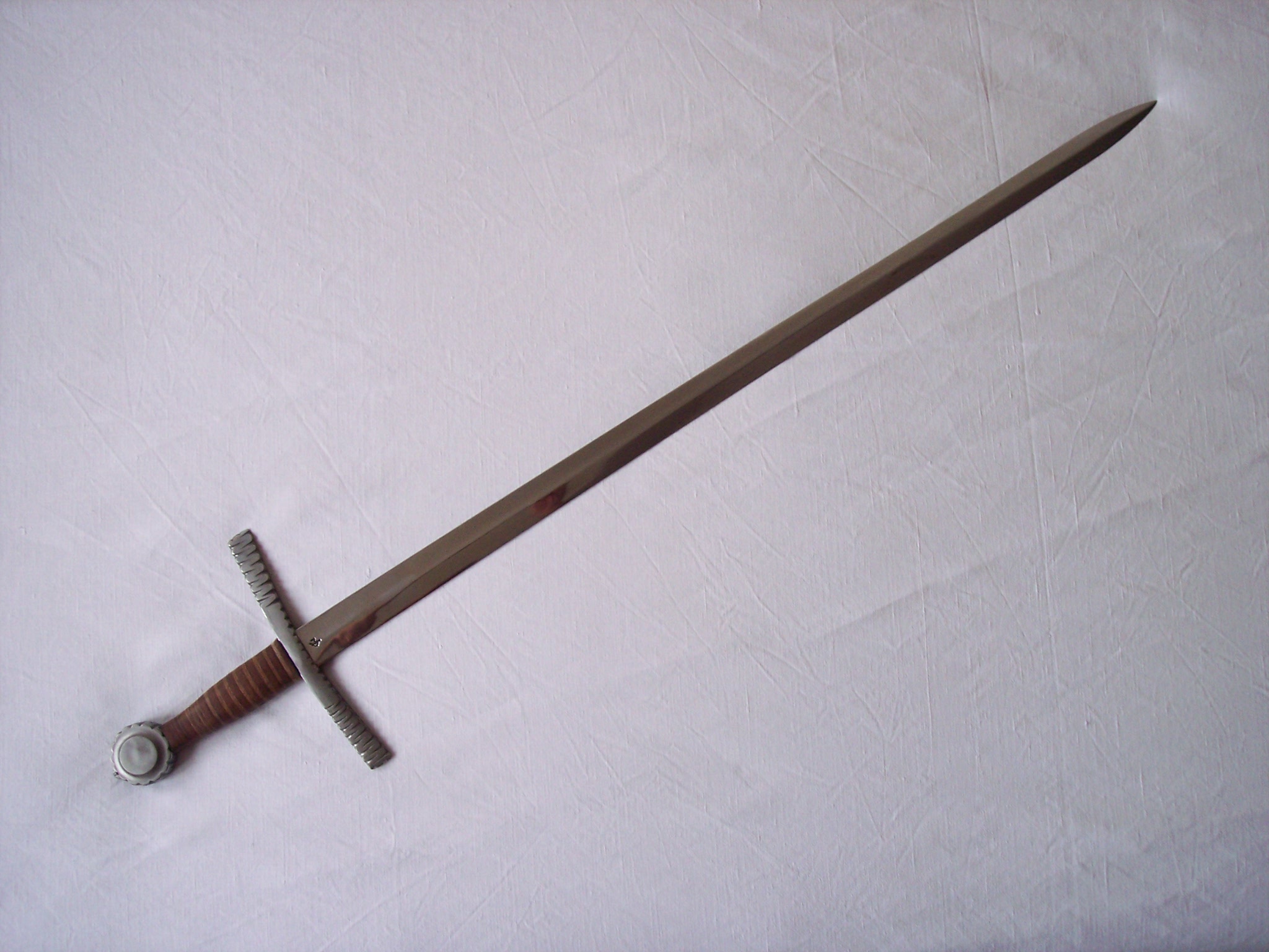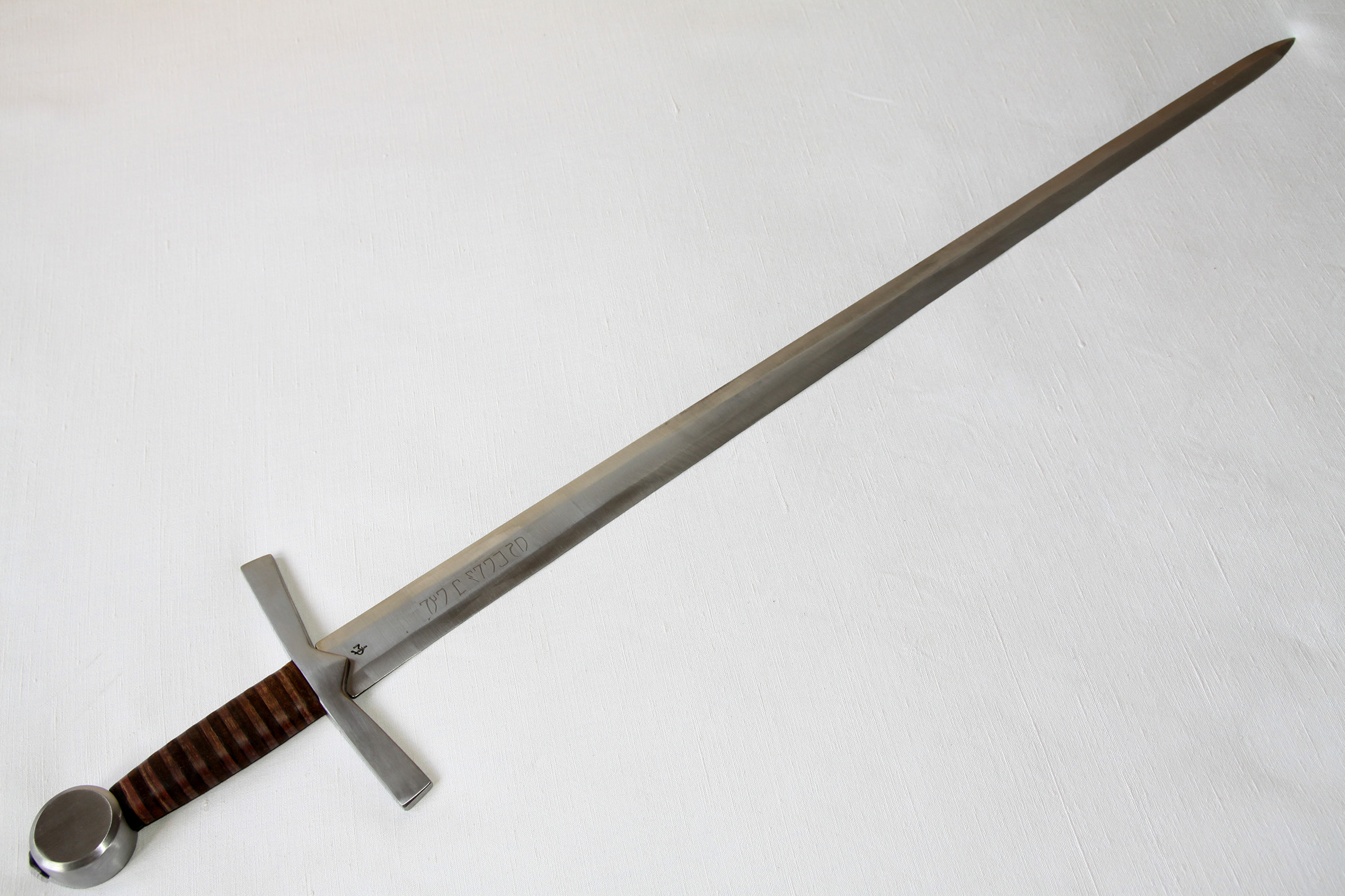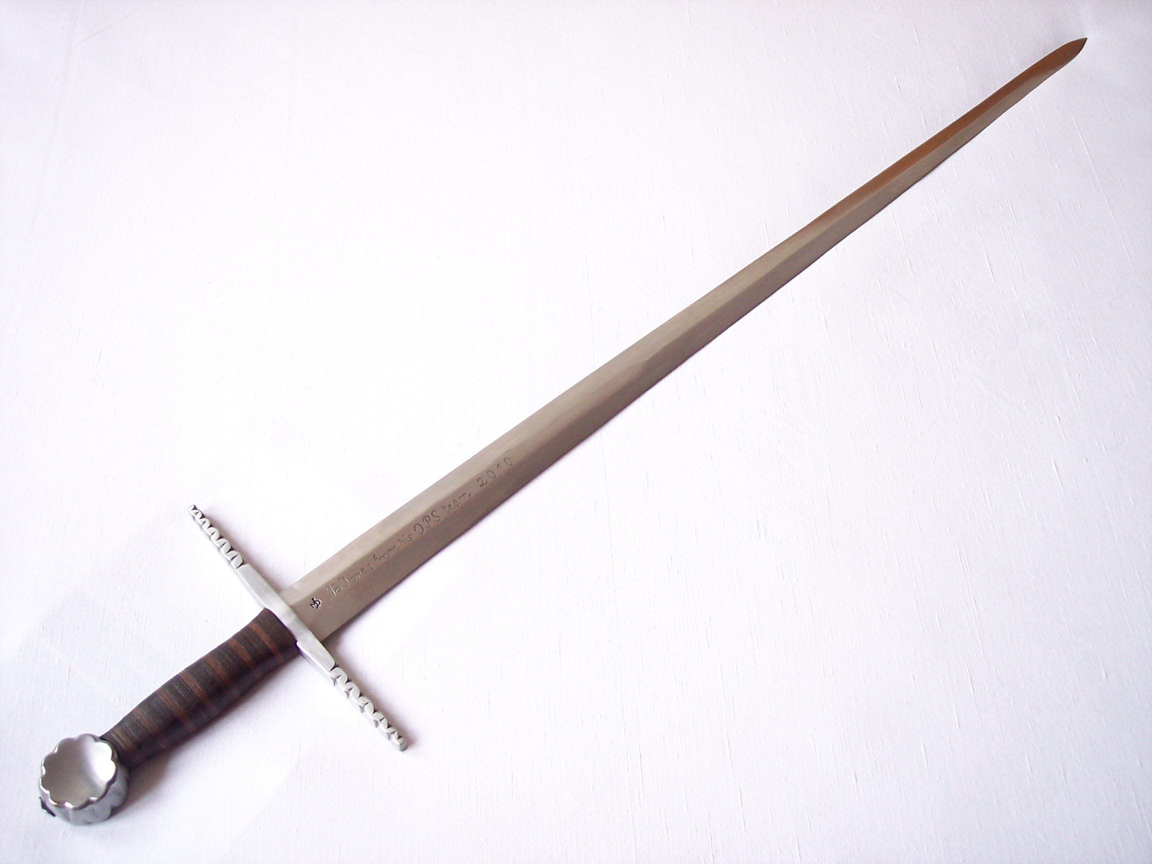 používáný ve 14.století v Západní Evropě,šestiboká čepel s hrotem a žebrem,jílec narážené mořené kroužky, souprava drátkovaná,hlavice nýtovaná-probíjená