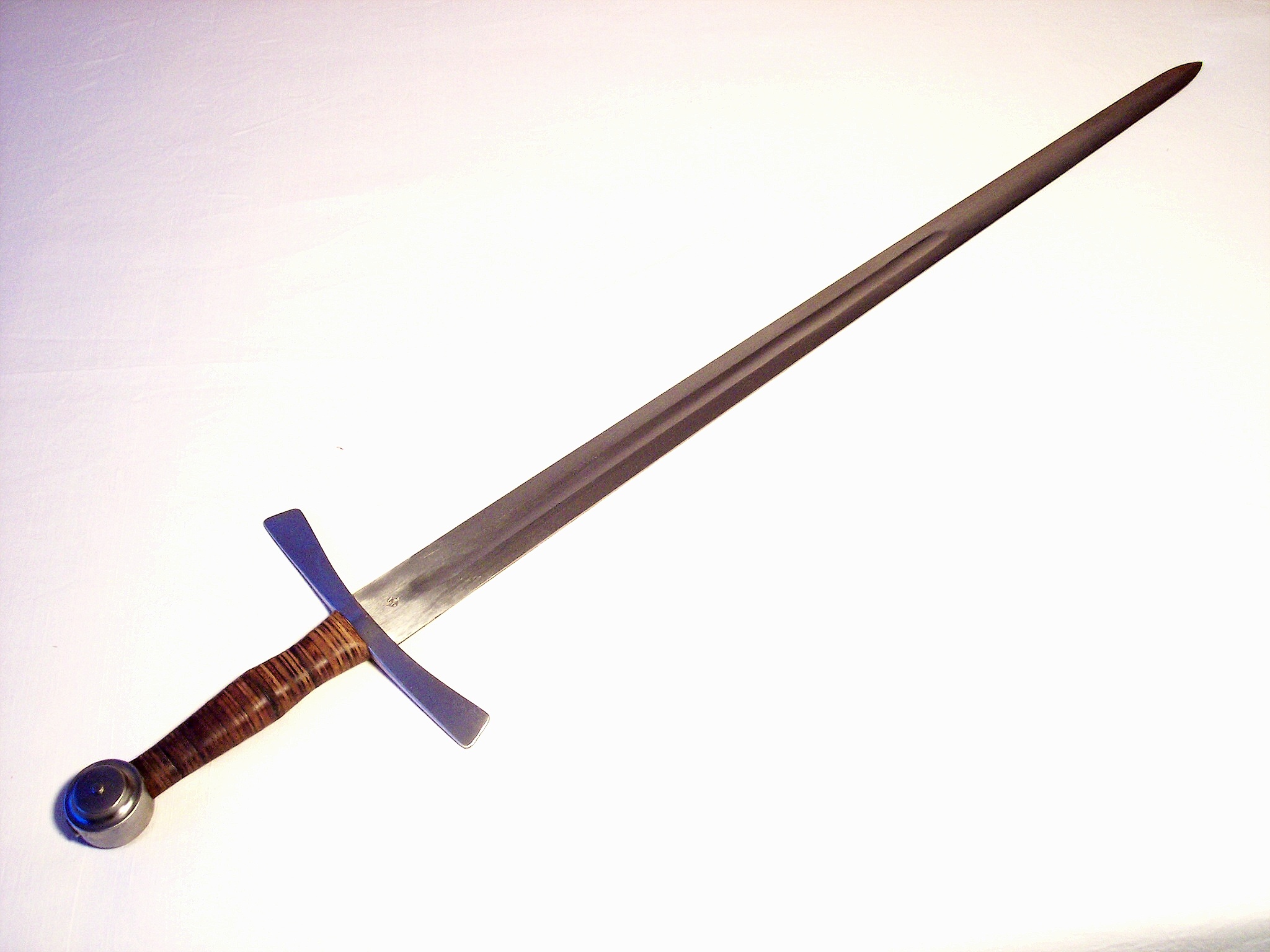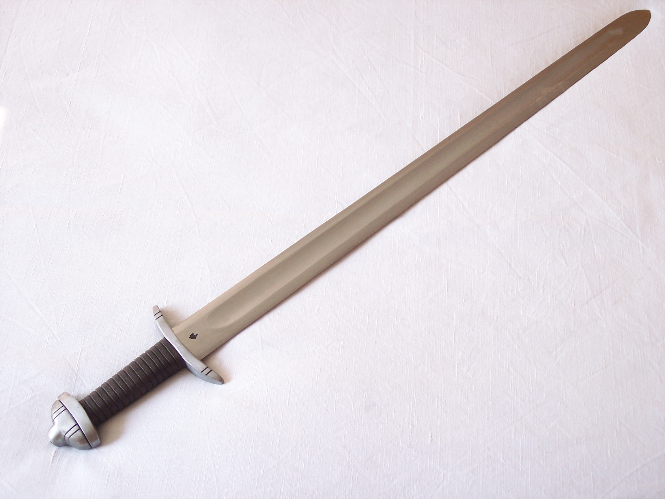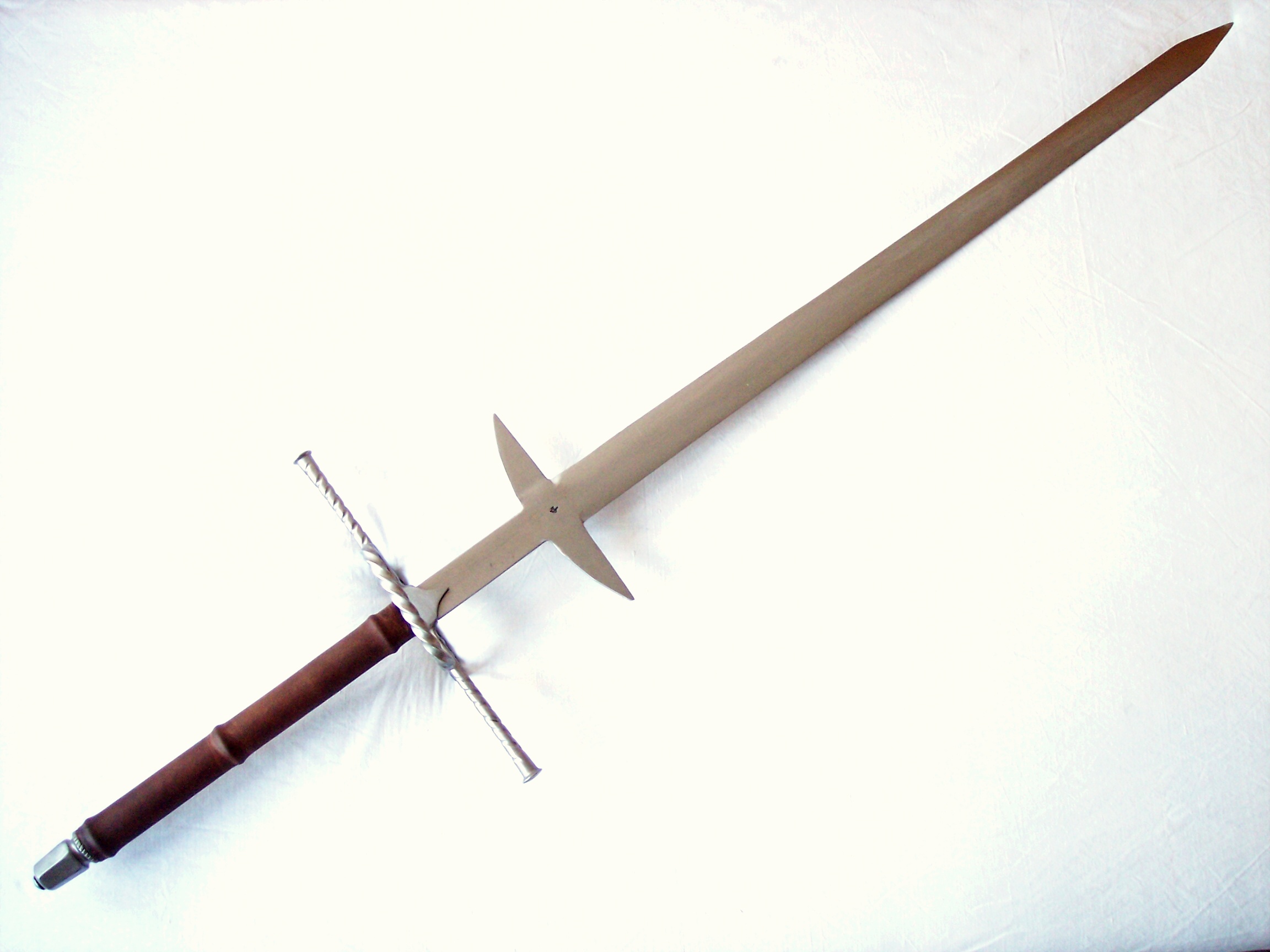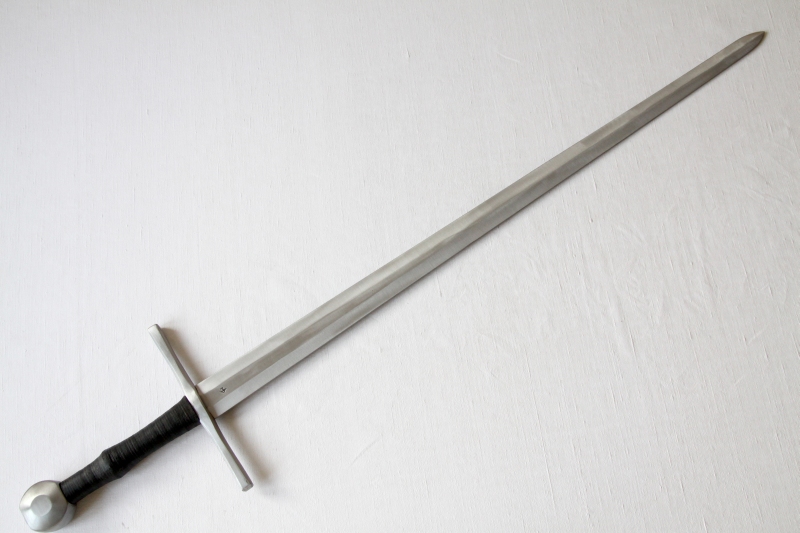 používáný ve 14.století v Západní Evropě,šestiboká čepel s hrotem a žebrem,jílec narážené mořené kroužky, souprava drátkovaná,hlavice nýtovaná-probíjená