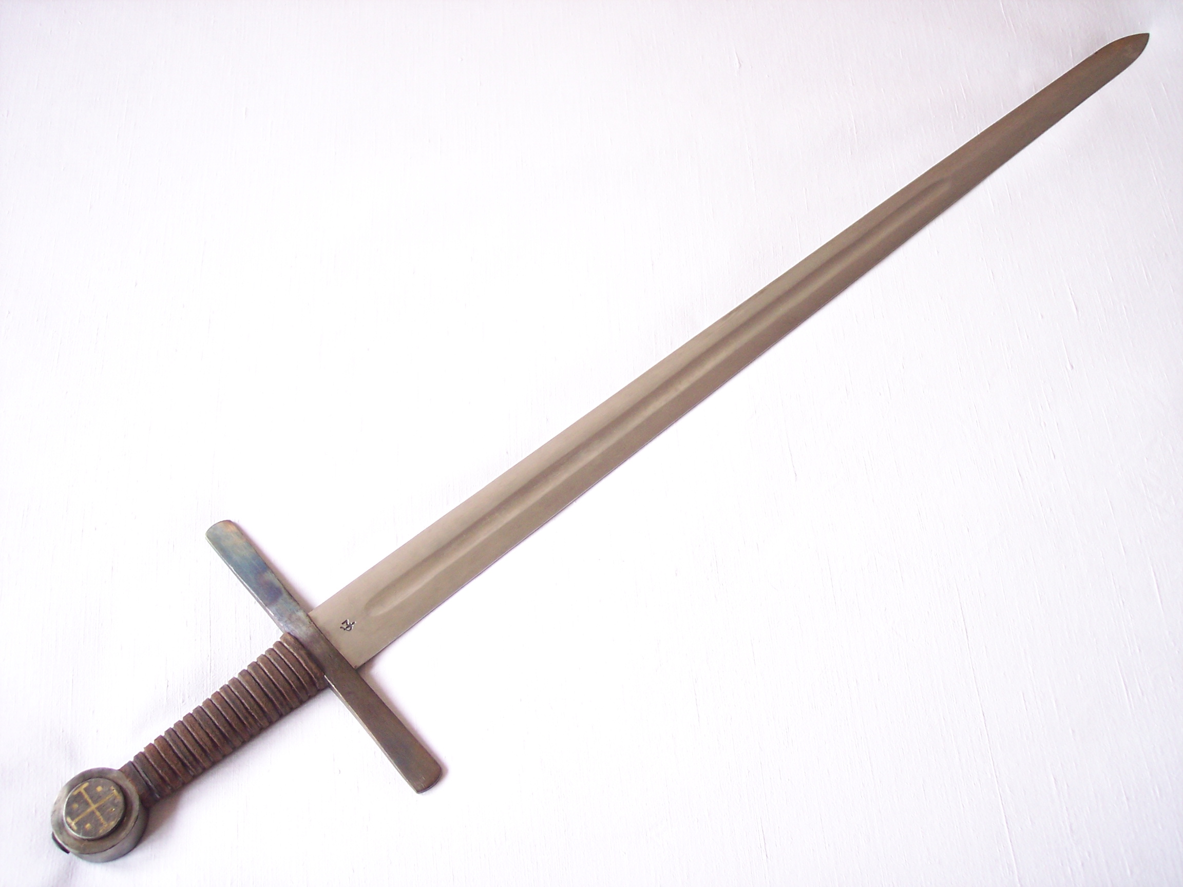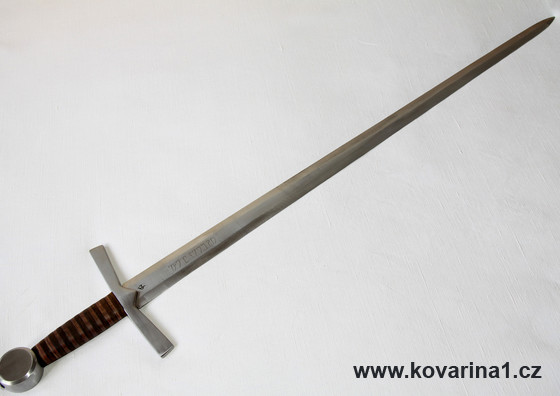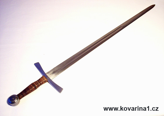 používáný ve 14.století,čepel s hrotem odlehčená žlábkem,jílec narážené kroužky – rýhovaný, zdobená hlavice probíjená nýtovaná, souprava modřená