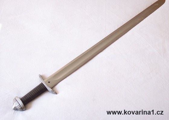 používáný v 8-10.století,čepel s kulatým hrotem,zpevněná žlábkem,jílec narážené kroužky, hlavice nýtovaná,souprava drátkovaná