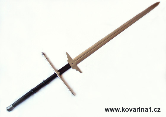 používáný v 15.století,čepel s hrotem odlehčená žlábkem,jílec narážené kroužky, mořený, patinovaný, souprava drátkovaná, hlavice nýtovaná